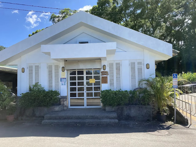 園區真得很大,一下車就是上坡路是山路,好熱但是樹真得很多,坡度算是平緩,慢慢走吧。